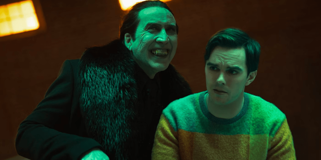 Meet Robert Montague Renfield (Nicholas Hoult), the long serving familiar to none other than Count Dracular (Nicolas Cage). After more than 100 years of servitude, Renfield finds himself in New Orleans at a self-help meeting for persons in toxic, co-dependent relationships. It’s here Renfield realises that he too is trapped behind the needs and desires of his master. On a mission to find victims to feed Dracula and bring him to full strength following a near fatal slaying, Renfield encounters underworld figure Teddy Lobo (played ridiculously to perfection by Ben Schwartz). Soon Renfield is intertwined with the underworld, a cop trying to bring the Lobo family down (Awkwafina) and his own mission to try and save people from Dracula’s plan for world domination.